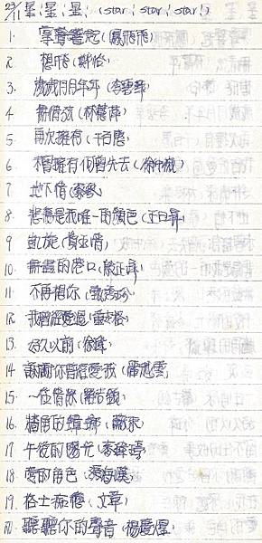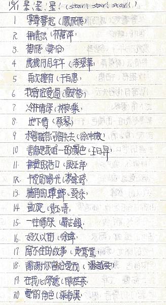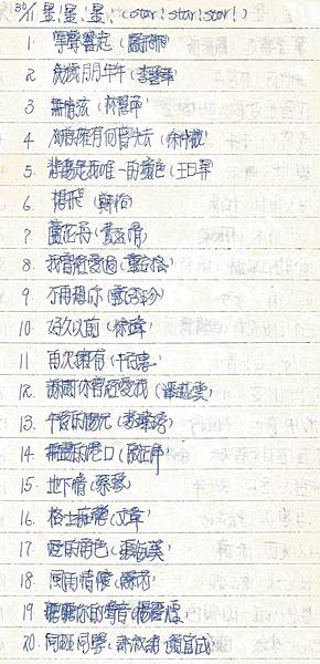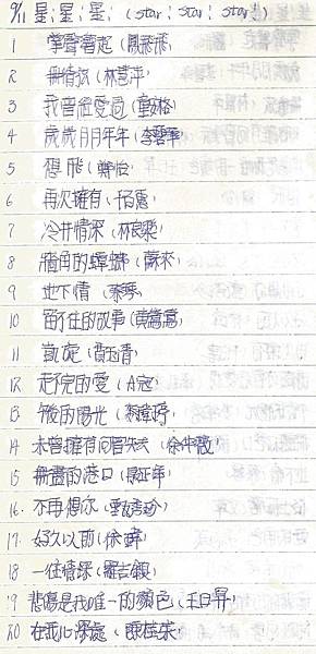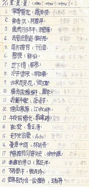 有關1986年11月9日中廣「星星星流行歌曲排行榜」榜單內容如下: