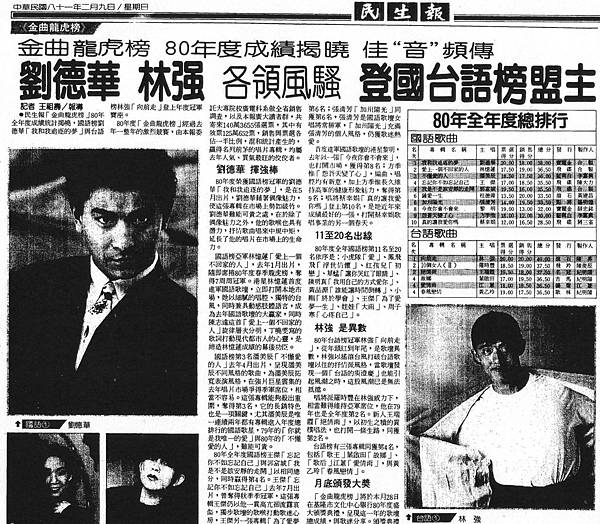 「金曲龍虎榜」1991年全年度總排行榜單於1992年2月9日公佈,內容如下: