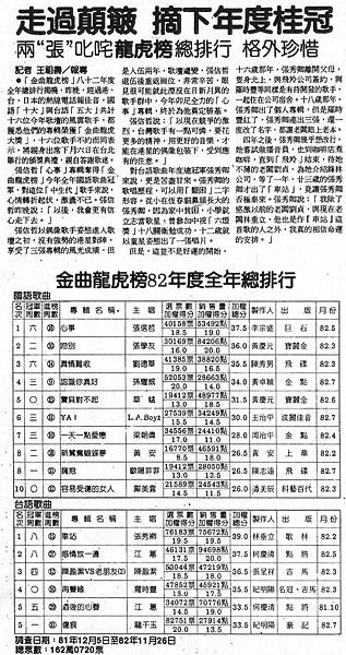 「金曲龍虎榜」1993年全年度總排行榜單於1993年12月30日公佈,內容如下: