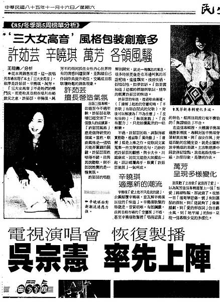 ※民生報-1996年11月2日、11月9日、11月16日、11月23日、11月30日