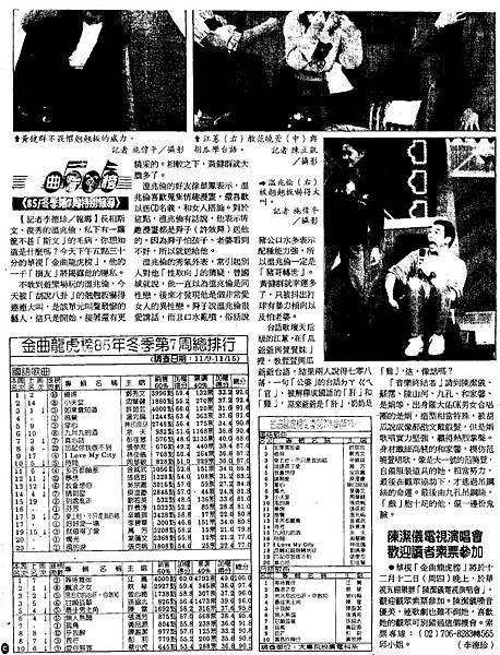 「金曲龍虎榜」1996年冬季第6週榜單於1996年11月23日公佈,內容如下:
