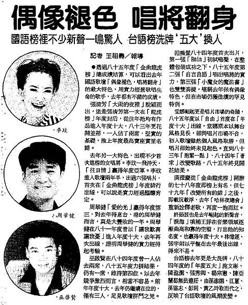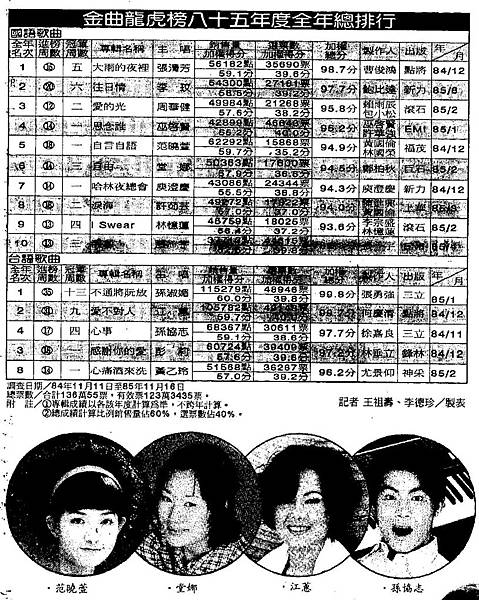 「金曲龍虎榜」1996年全年度總排行榜單於1997年1月7日公佈,內容如下: