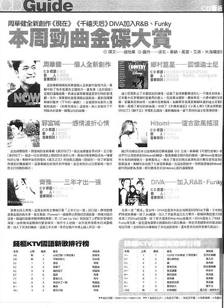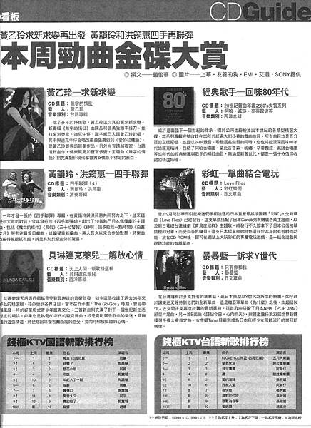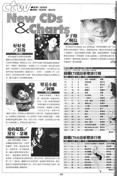「錢櫃KTV點播排行榜」1999年11月第4週榜單於1136期時報周刊公佈,內容如下: