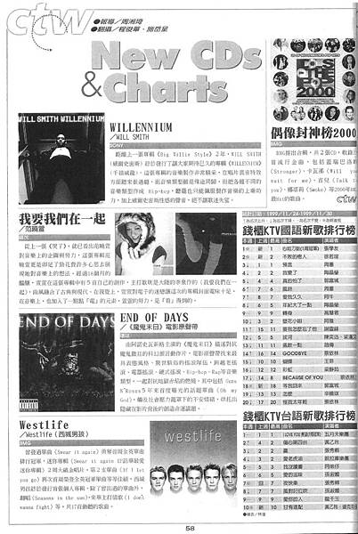 「錢櫃KTV點播排行榜」1999年11月第5週榜單於1137期時報周刊及110期TVBS周刊公佈,內容如下: