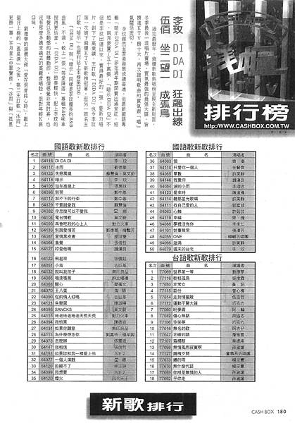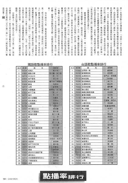 「錢櫃KTV點播排行榜」1998年3月榜單於46期錢櫃雜誌公佈,內容如下: